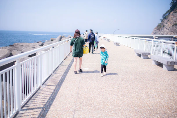 まずは朝の挨拶からスタート。「aini自然体験学校は夢中になって楽しむ学校!気になったものを面白がる気持ちを大切にしよう」とお伝えしました。道中ではヨットやトンビなど江の島らしい景色を見つけ、好奇心がどんどん膨らんでいきました。