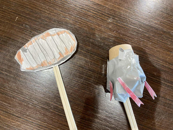 みんなのアウトドアさんに、見つけた生き物が改めて何だったのかを教えてもらいながら、またイメージを膨らませていきました。