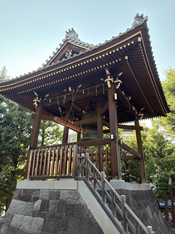浅草の「時の鐘」は、江戸時代に徳川綱吉の命で建立された歴史ある鐘楼です。当時は一日に数回鐘が鳴らされ、時を知らせる大切な役割を担っていました。中でも午後2時に打たれる八つの鐘の音から、おやつの時間を意味する言葉「お八つ(おやつ)」が生まれたと言われています。今も大晦日には「除夜の鐘」として撞かれ、浅草の街に厳かな響きを届けています。浅草散策の途中で耳を澄ませてみると、江戸から続く時の流れを感じられるかもしれません。