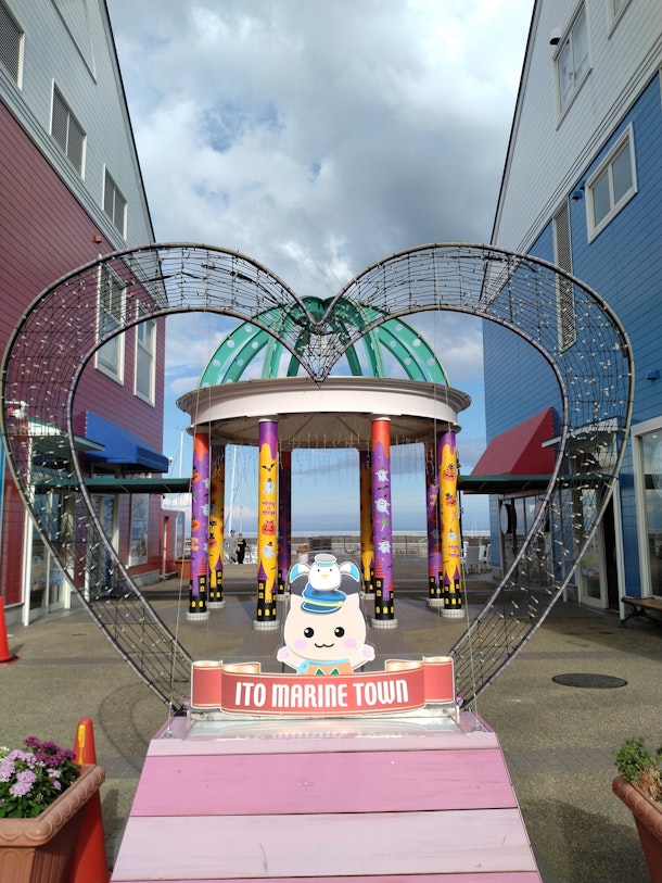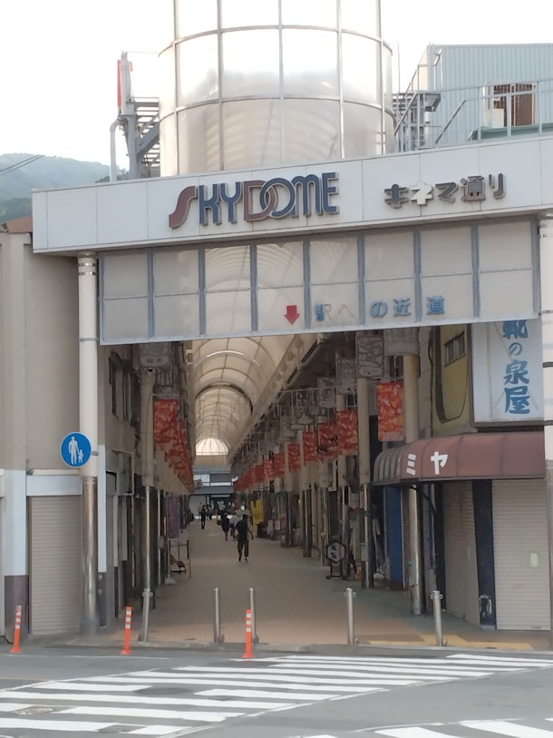 伊東駅近くの商店街と言えば「湯の花通り商店街」「キネマ通り商店街」。湯の花通りは戦後の闇市から栄えたとの事。七福神をシンボルとしてフィーチャーしており、商店街一帯に、お湯かけ(願掛け)ができる小型の七福神の石像が配置されている。キネマ通りは、戦前にあった映画館「キネマホール」に因んで付けられた。どちらもレトロ感が半端ない。