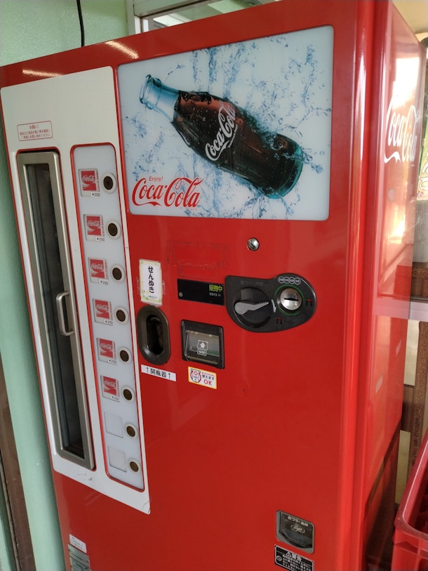 伊東のシンボル、大室山。標高580メートルの火山でスコリア丘である。山頂にはリフトで楽に登れる。リフト乗り場付近のお店で見つけたレトロなコカ・コーラ自動販売機。