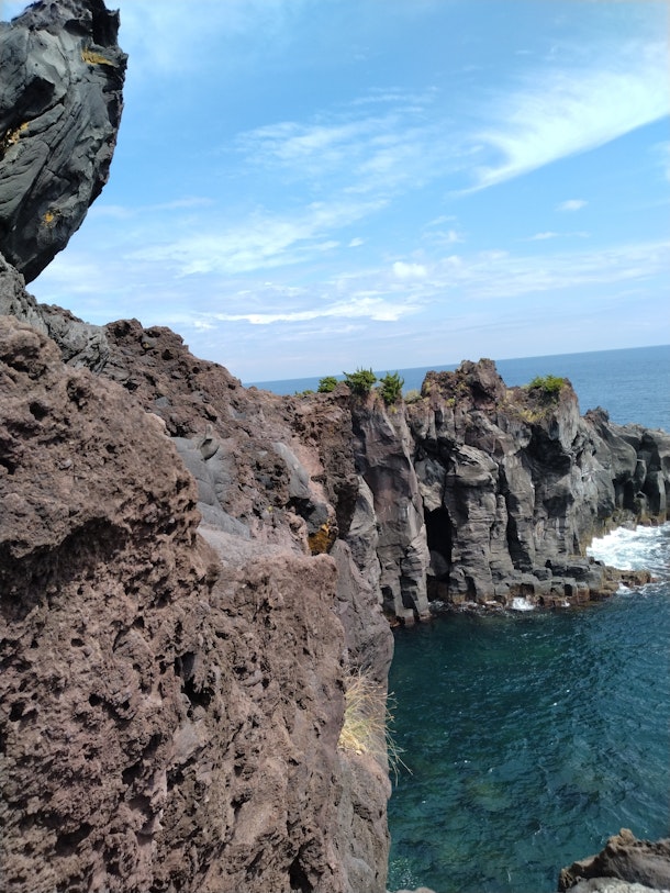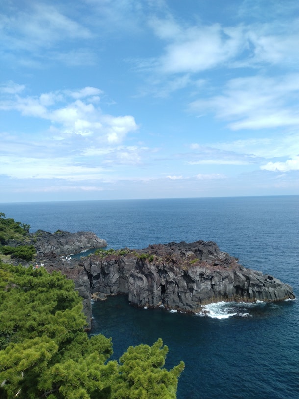 伊東にある城ヶ崎海岸は、伊豆半島の東海岸に広がる断崖絶壁の海岸線で太平洋の荒波が作り出したダイナミックな景観になっている。