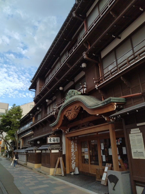 この「東海館」は、伊東市指定有形文化財で、1928年(昭和3年)から1997年(平成9年)まで温泉旅館として営業していたが、現在、旅館は閉業している。