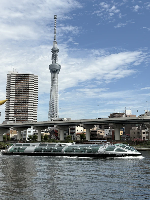 隅田川は江戸の昔から人々の暮らしを支えてきた東京のシンボル。船からは青空に映えるスカイツリーや、吾妻橋・駒形橋といった歴史ある橋を眺められ、川の流れとともに浅草の街並みをゆったり楽しめます。