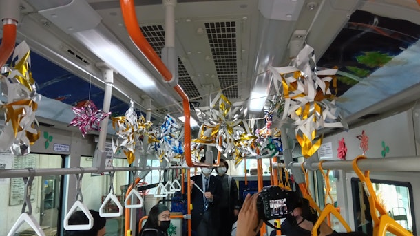 昨年(2024年)、県立多古高校の美術部員5人が、多古-成田空港間で運行しているシャトルバスの車内を手作りのオーナメントなどでクリスマス仕様に飾り付けてくれ、評判となりました。( https://www.asahi.com/articles/ASSCV52LDSCVUDCB00LM.html )
