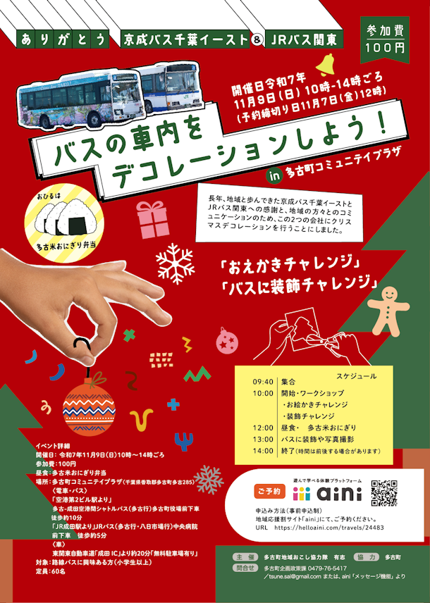 ありがとう京成バス千葉イースト&JRバス関東】バスの車内をデコレーションしよう!〈参加料100円で多古米おにぎり弁当付き〉