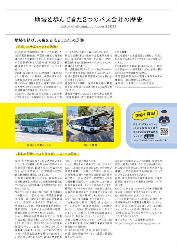 京成バス千葉イーストとJRバス関東は、長年、多古町周辺の地域を結び、未来を支えてきてくれています。