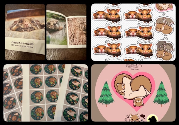 それに加えて、いろいろなグッズや写真集をこれからガンガン作成していきます🐿️ 何名かの素晴らしいデザイナーとコラボして絶賛用意中です♪ 写真集はサンプルを先ほど観て、これはゲストさまに提供できるレベルだと確信しました😊 明るいうちの昼間のムササビの素顔を是非お楽しみください✨ オリジナルアクリル・ステッカー・缶バッジなどなど乞うご期待☺️