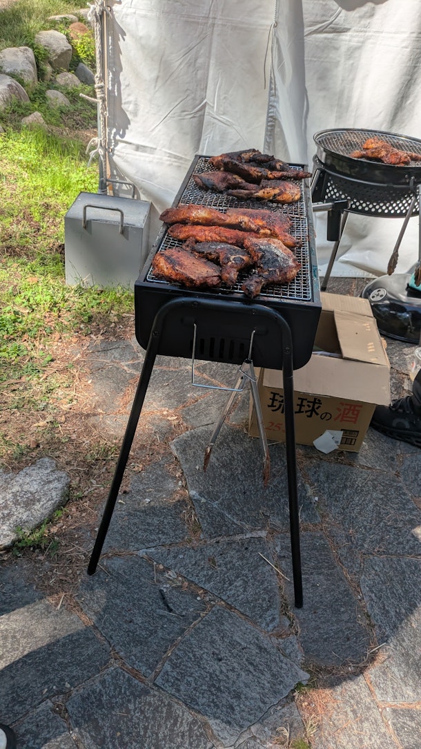 ゲートをくぐり、谷底から30メートルも高い橋を渡って、すぐに見えたのがこれ。長い時間を掛けて煙で薫製したチキンがお出迎え。駅前の小木曽製麺所で大盛り盛りそばを食べたばっかりだっので涙を飲んでスキップした。