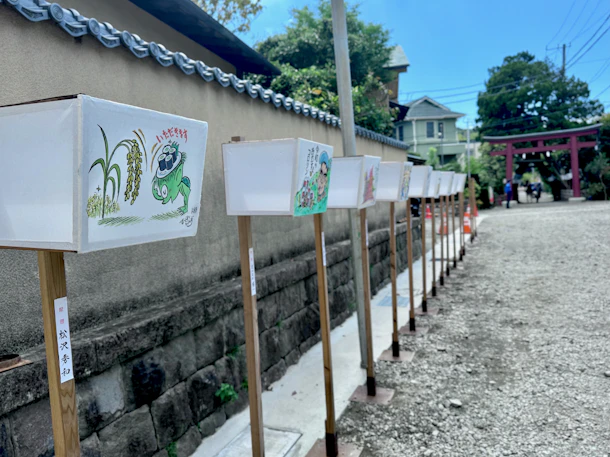 お米の漫画がたくさん並ぶ... 荏柄天神 絵筆塚祭の漫画行灯