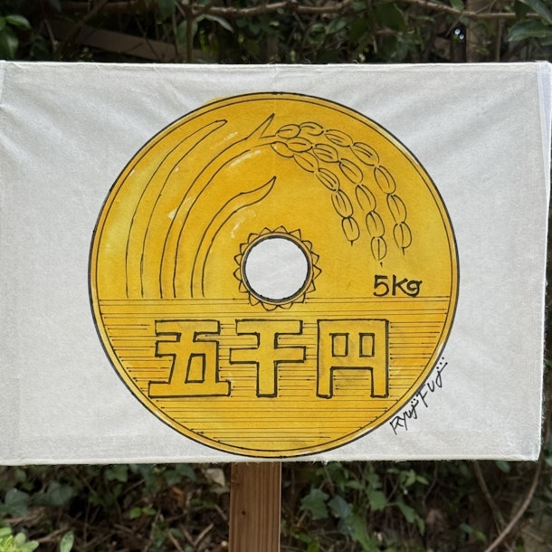 こちらは5円玉を5kg5000円玉にデフォルメした作品。