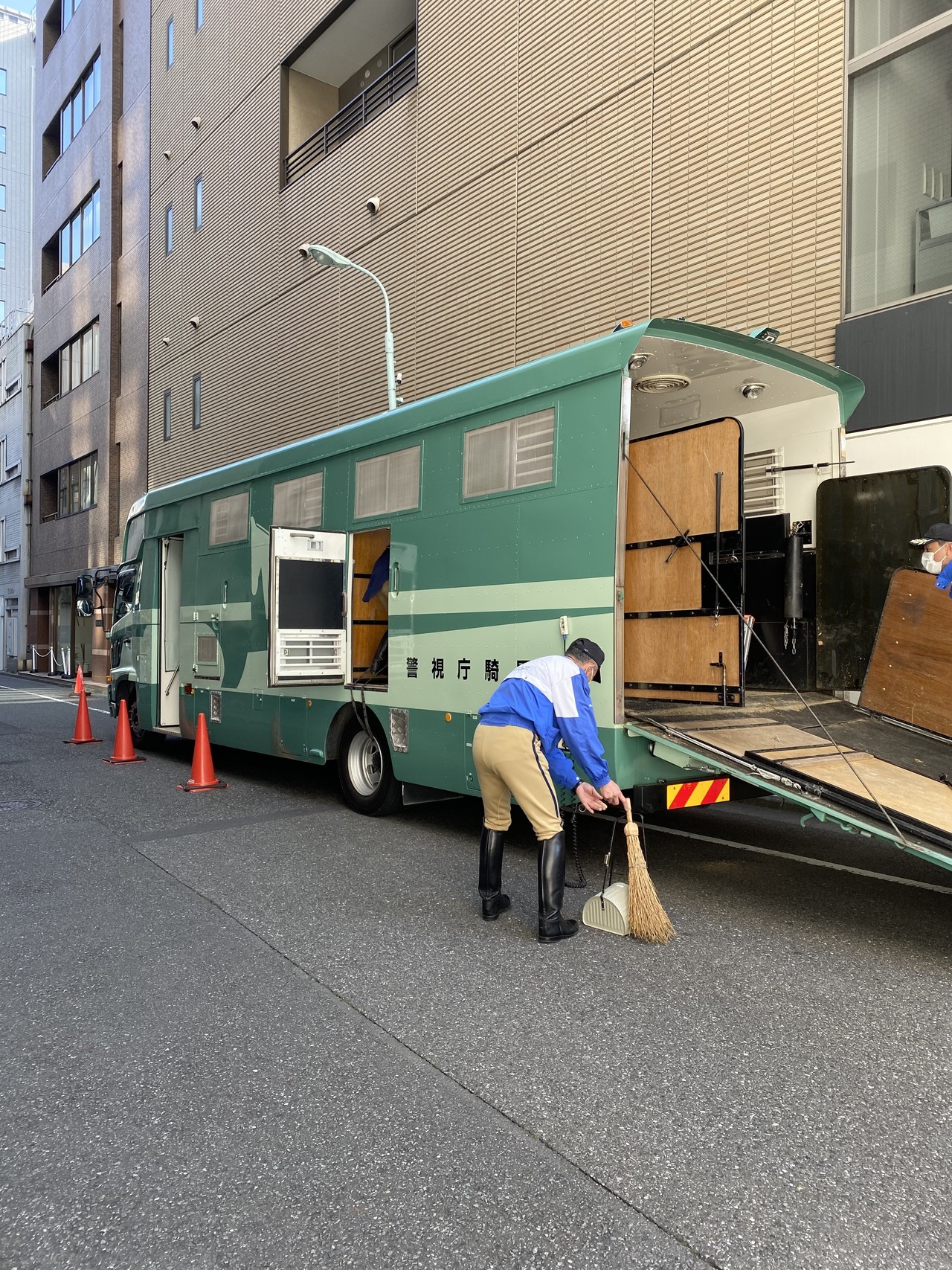 馬さんの一頭だけ、騎手の方が、グルグルゆっくり歩いて、時間をかけてから、車にすっと乗せていきました。