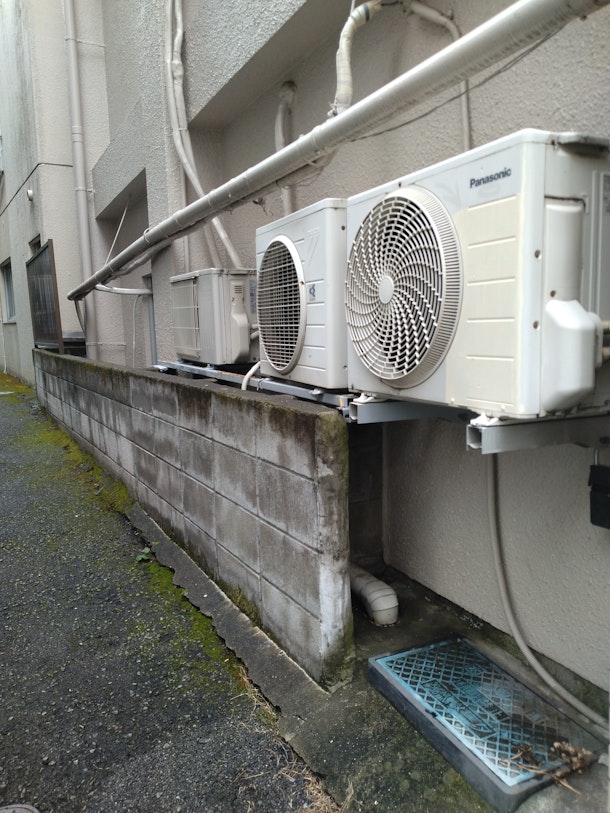 新宿区住吉町。エアコンの室外機の配列が素敵。