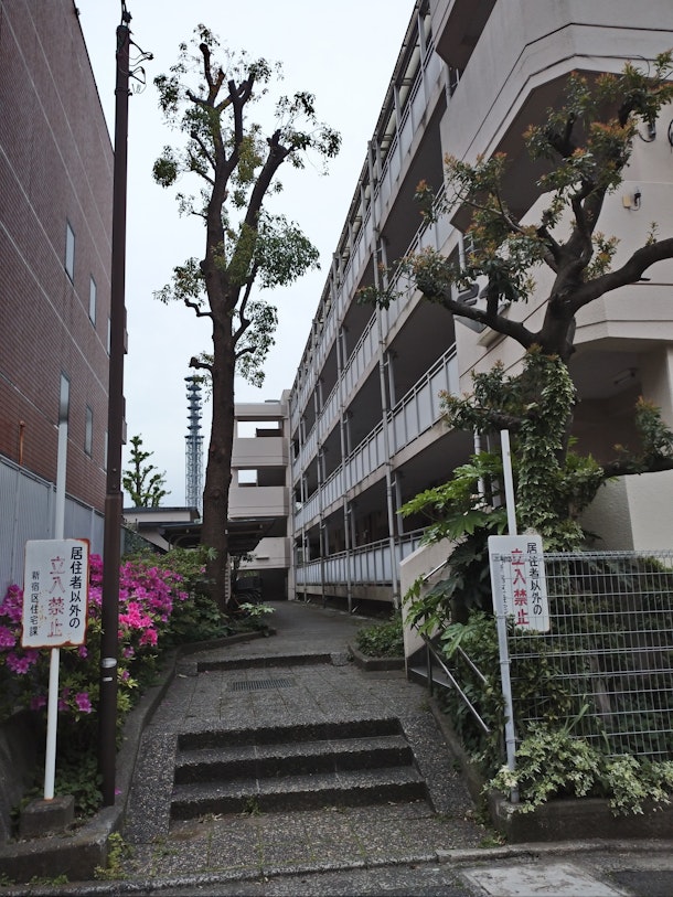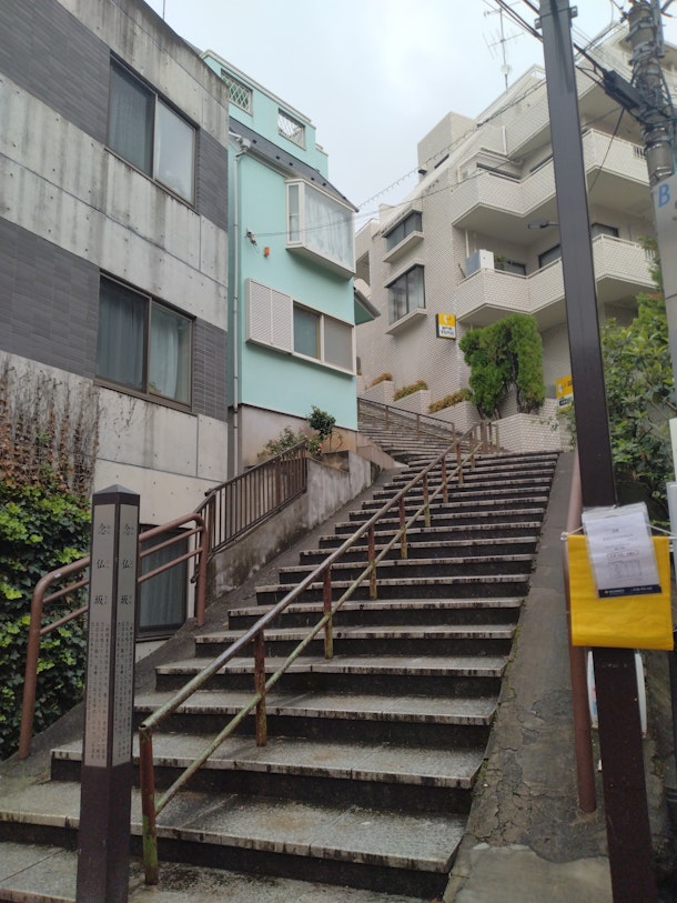 新宿区住吉町。念仏坂など比較的、あけぼのばし通り商店街の東西は、階段が多い。