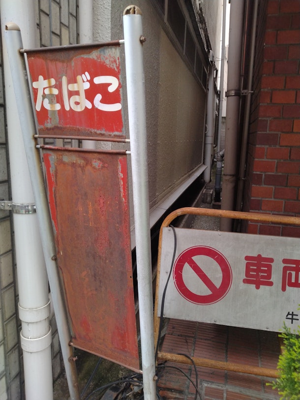新宿区住吉町。たばこ看板・・・最近見かけません。
