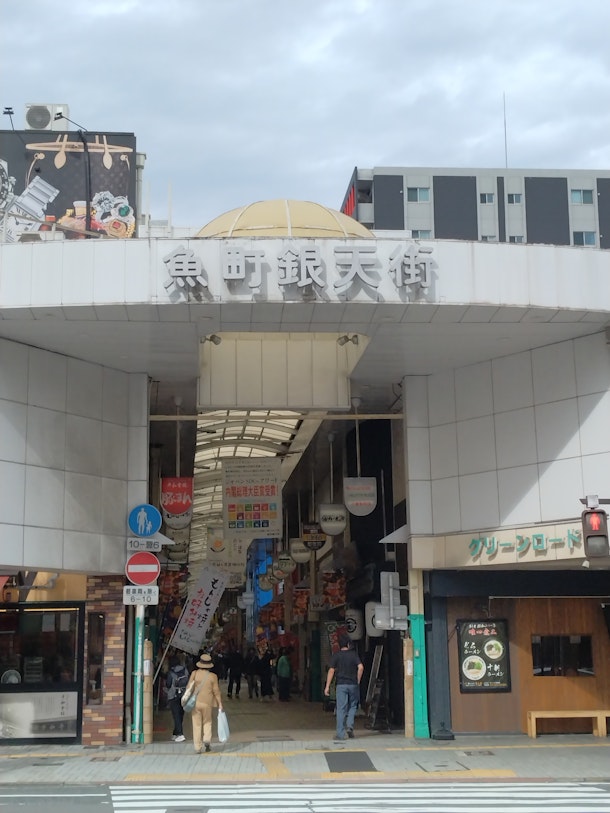 魚町 町内にある魚町銀天街。公道上にアーケードが架かるアーケード商店街の日本における発祥の地であり、北九州市の中心的商店街である。