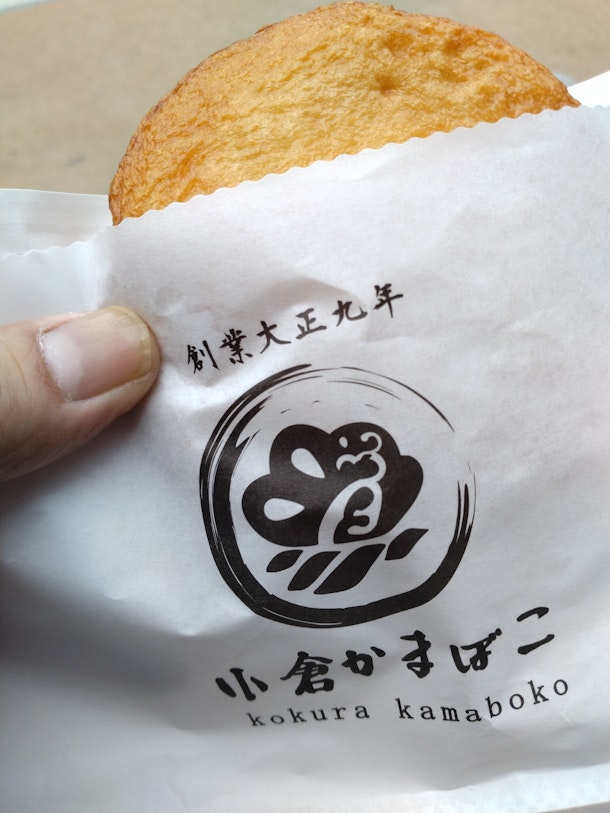 こちらは老舗の「小倉かまぼこ」。カナッペ(ニンジンや玉ねぎなどを練り込んだ魚のすり身を薄い食パンで巻き、油で揚げたもの)が人気商品である。写真に載せているのは、クリームチーズ天。カナッペも食べたが、どちらも魚のすり身の味がしっかりしていて無茶苦茶美味い。しかも、注文したらもう一度揚げなおしてくれました。この場を借りてお礼申し上げます。きっとお酒にも合うんだろうなぁ。