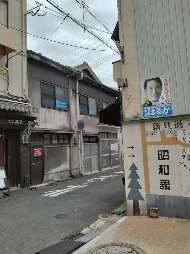 旦過市場 すぐの場所にある映画館「小倉昭和館」。1939年(昭和14年)開館の歴史ある映画館。2022年8月10日、旦過市場の火災で旧館が全焼したが、2023年12月19日に新館で営業を再開した。かつて(1970年代)は日活ロマンポルノを上映していた事もあったとか。