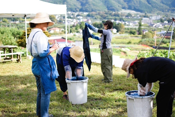 しかし農と暮らし舎では、種を蒔いたり、苗を植えたりしながら、季節を通じて成長を見守った藍で染めることを大切にしています。