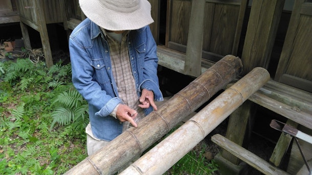 大きく 立派に育った稲をつかんで 刈ってゆく。