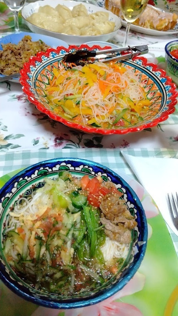 ククシ(冷麺)とフンチョーザ(春雨サラダ)