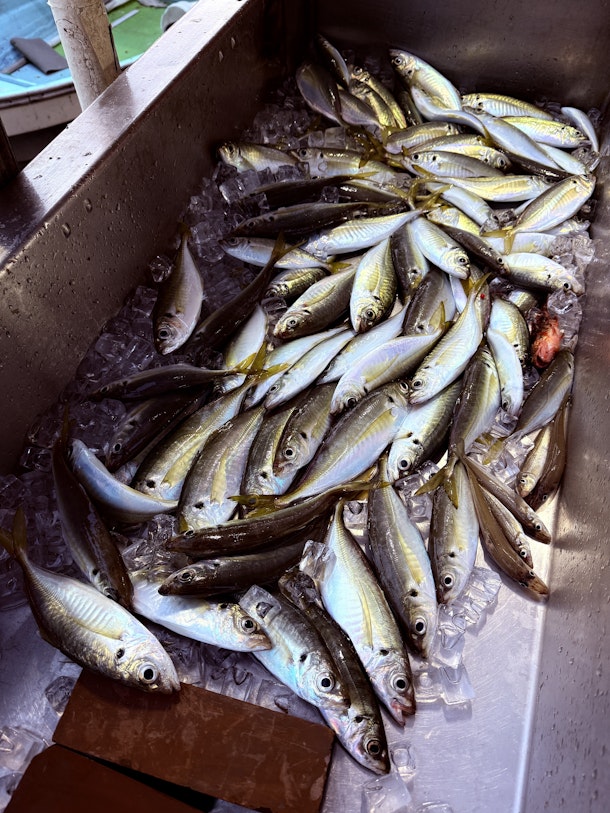 岸近くに戻って、数が伸びて全体で70〜80尾ほどでしたー!他にシロギスが5、カサゴが3尾。