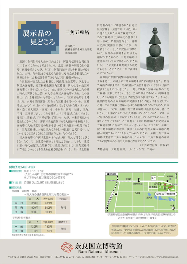 【画像13】 金銅製三角五輪塔(奈良国立博物館のパンフレットより)