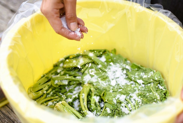 ですので、今回の大根菜も土埃をさっと落とすだけで、常在菌をなるべく洗い流さないようにしています。