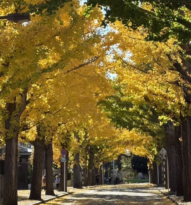 樹々たちは紅葉、黄葉、いまは、とくに銀杏が美しいですね。