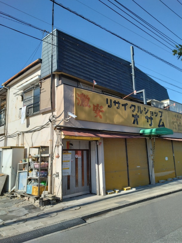リサイクルショップ看板の手作り感がたまらない。