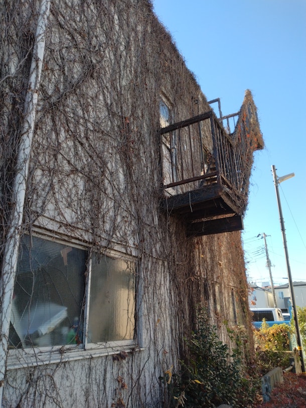 枯れた蔦と古い建物のセットはレトロ最強である。
