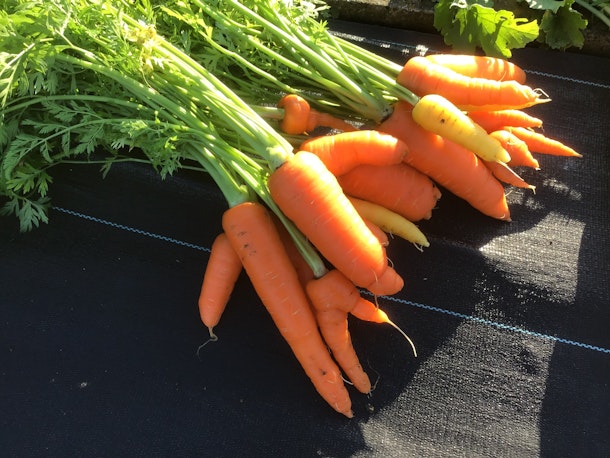 個人的には茶色がある部分が甘い〜人参です。大根も、上と下で、白い部分が土の中で、緑が地上の部分です。