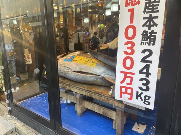 見事な太さですね。243Kg 1Kg210万円。5億1030万円だそうです。過去の最高額(3億3360万円)の日もツアーしていました。