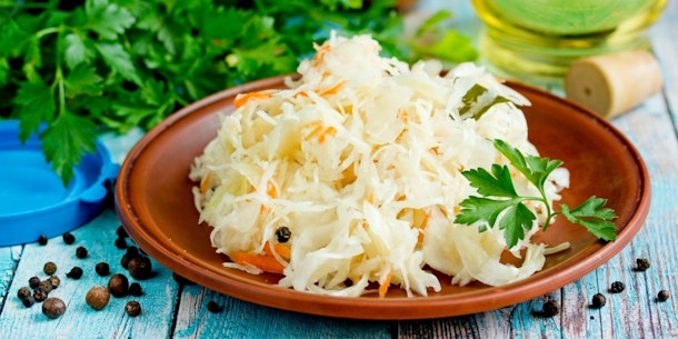 ザワークラウトが完成したら、すぐに冷蔵庫へ! 清潔な瓶に詰め替え、押し付け、漬け汁を注ぎ加え、冷蔵庫または低温の貯蔵庫(0〜+5°C)に入れます。低温では発酵がほとんど止まり、風味と状態を保ちます。