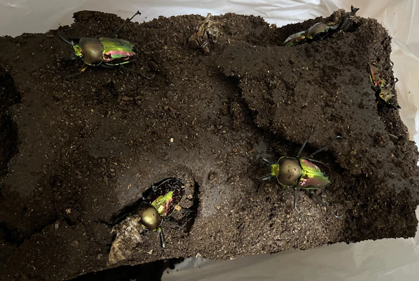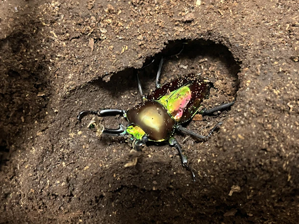 写真 私の家で羽化したばかりのニジイロクワガタ。土の中にきちんとサナギの部屋を作っていたことが分かります。