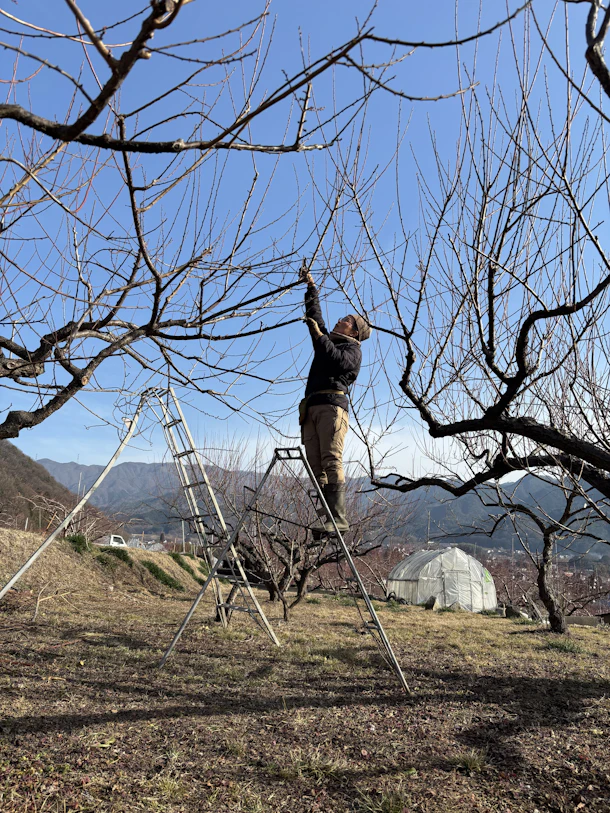 果樹の兼業農家でもある義父に、剪定を教えてもらう時間は、私たちにとってかけがえのない大切な時間です。