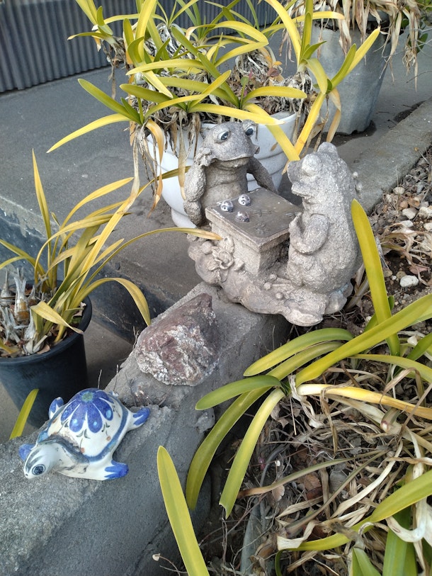 おシャレなカエルと亀の置物。