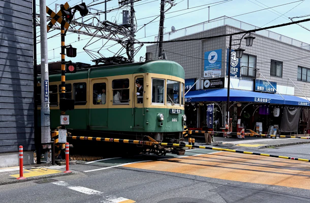 街と一体となった江ノ電にはたくさんの踏切があり、それぞれ個性的な景色を作り出しています。