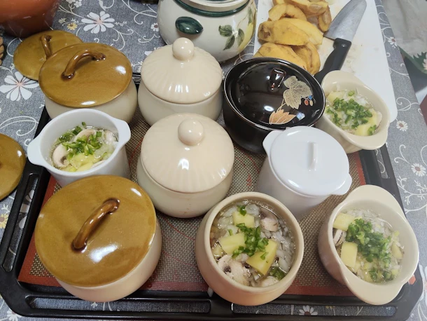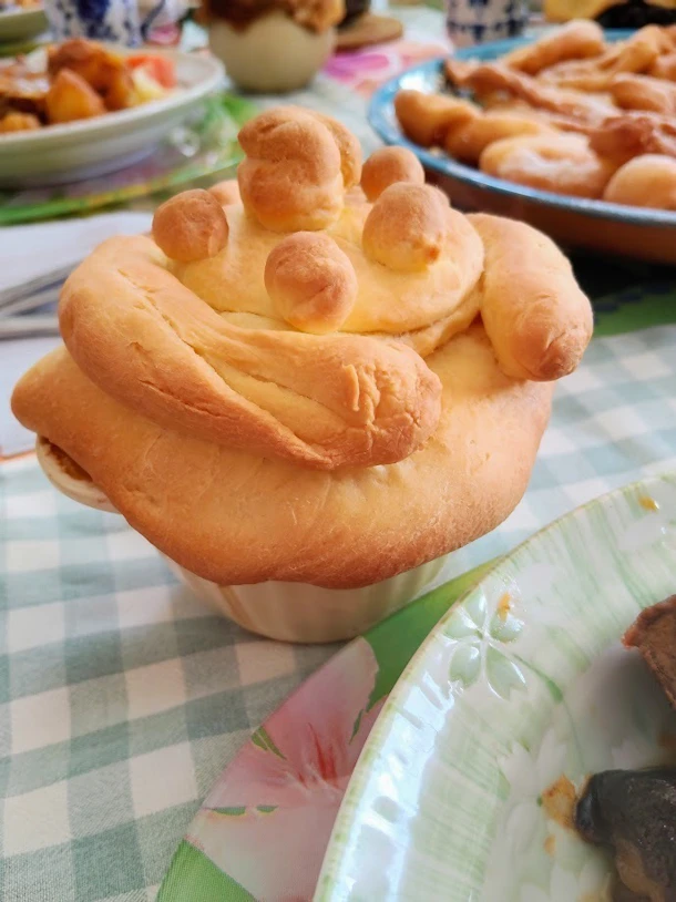 🥘 壺焼きスープ / ガルショーク ロシアでは「ゴルショーク(壺)」と呼ばれるこの料理は、ただのスープではなく、まさに"食べる"温かい一品。土の器でたっぷりのお肉と野菜がじっくりと煮込まれます。そして今回はなんと、どの壺も可愛い 生地の蓋で飾られていました✨ 参加者の皆さんが一つひとつ丁寧に形を作り、それぞれの個性が光る仕上がりに!手間ひまかけた愛情たっぷりの蓋を見ただけで、幸せな気持ちになりました。独特な風味の多いロシア料理の中で、こればかりは参加者の皆さんも一口で大好きになってくれました!