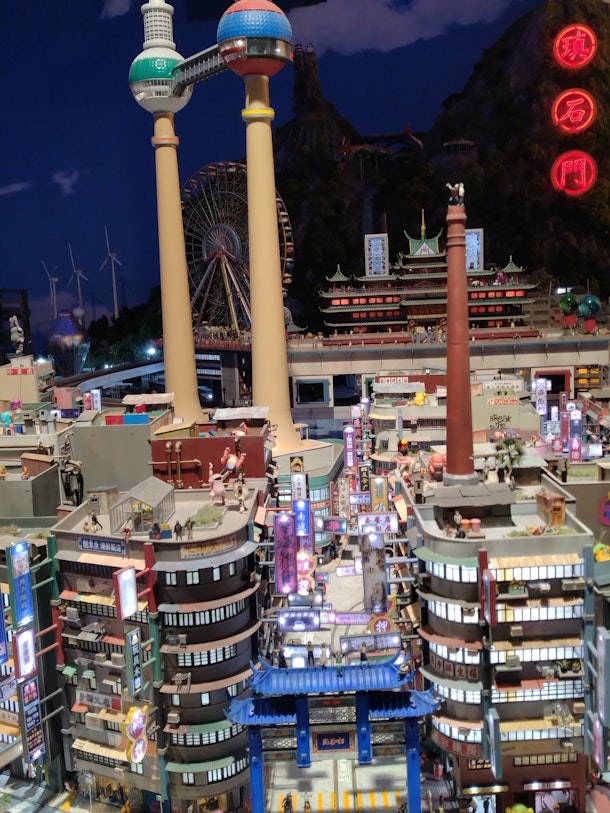 「宇宙センター」「世界の街」「関西国際空港」「エヴァンゲリオン」などのエリアがあり、リアルからアニメの世界まで精巧なミニチュアで再現されている。