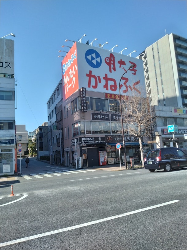 JR中央線から見える明太子かねふくの看板。かなり目立つ。