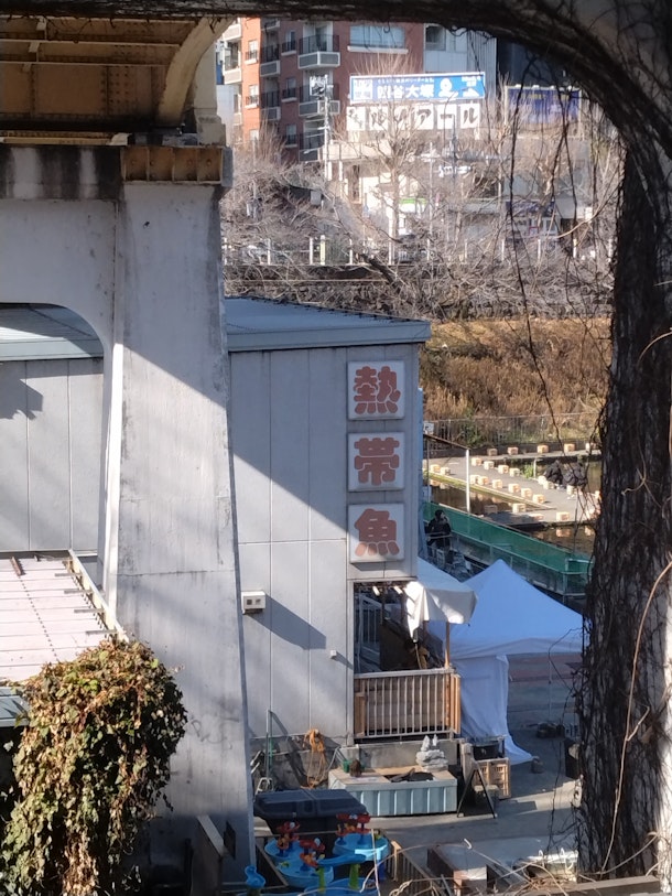 JR市ヶ谷駅ホームからも見ることが出来る「市ヶ谷フィッシュセンター」。実は1962年以降、利用・貸与の許可を更新していない為、約60年ほどに渡って違法占拠状態が続いているらしい。東京都内のど真ん中である異界の場所。結構行ったことのある人多いのではないか⁉