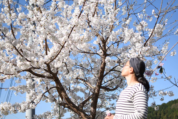 我が家の庭に咲く桜も楽しみつつ、あたりに広がる桃色の景色にもうっとり。