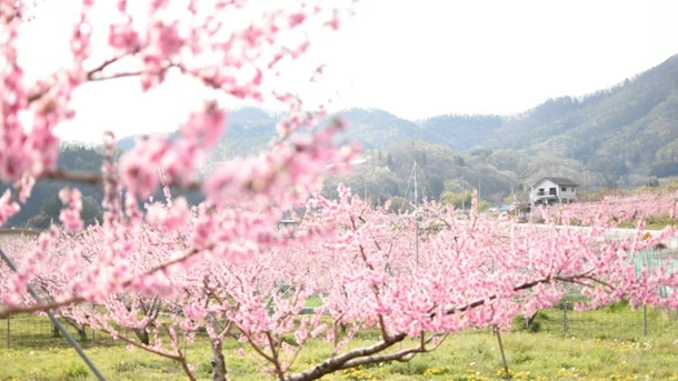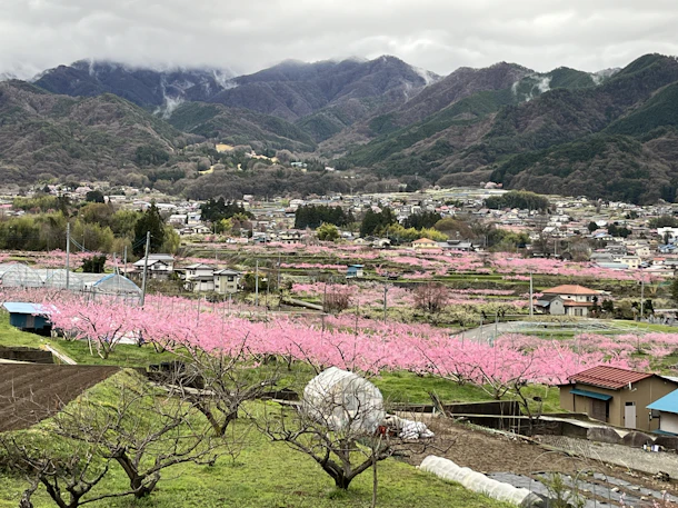 周辺の農家さんが育てている桃の花が咲き誇る風景はまさに桃源郷。