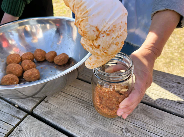 私たちの畑で栽培した青大豆を使った豆板醤づくりの体験。