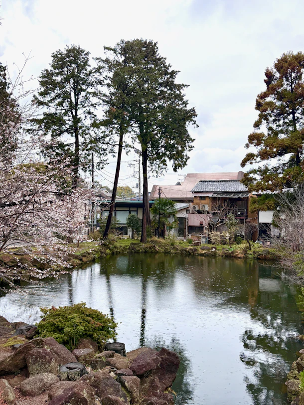 静かな池の水面に桜が映り込み、いつもの景色にやわらかな彩りが添えられていました。