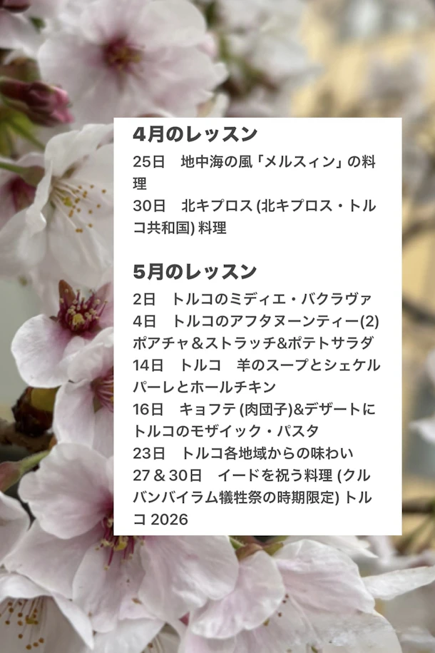 4月&5月料理教室と犠牲祭2026年レッスン