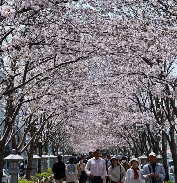 市の中心を走る若宮大路・段葛は、3/29現在で5分咲きほど。