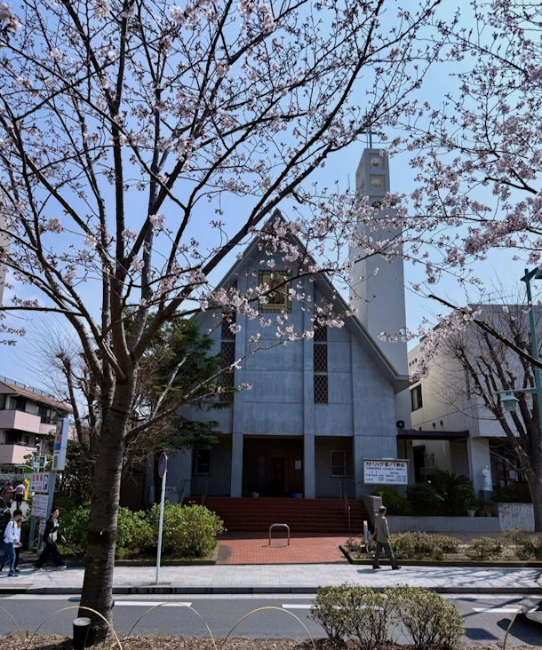 段葛の小高い目線からは、雪ノ下教会やメゾンドカカオの建物が桜に包まれ、 この時期ならではの景色を見せてくれます。