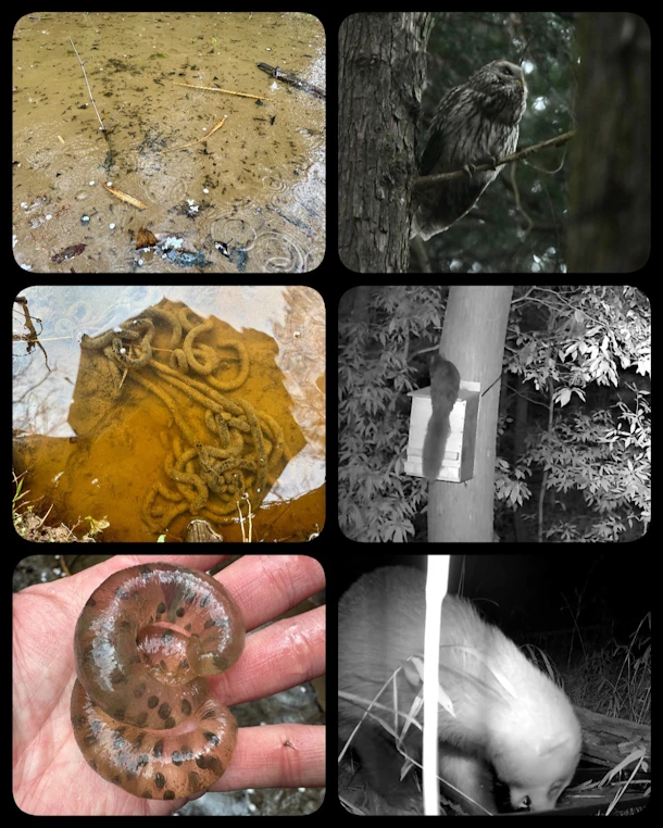 森の中ではフクロウオスも観察できました!トレイルカメラにはいつものニホンアナグマとムササビが映っていました🐿️🦡